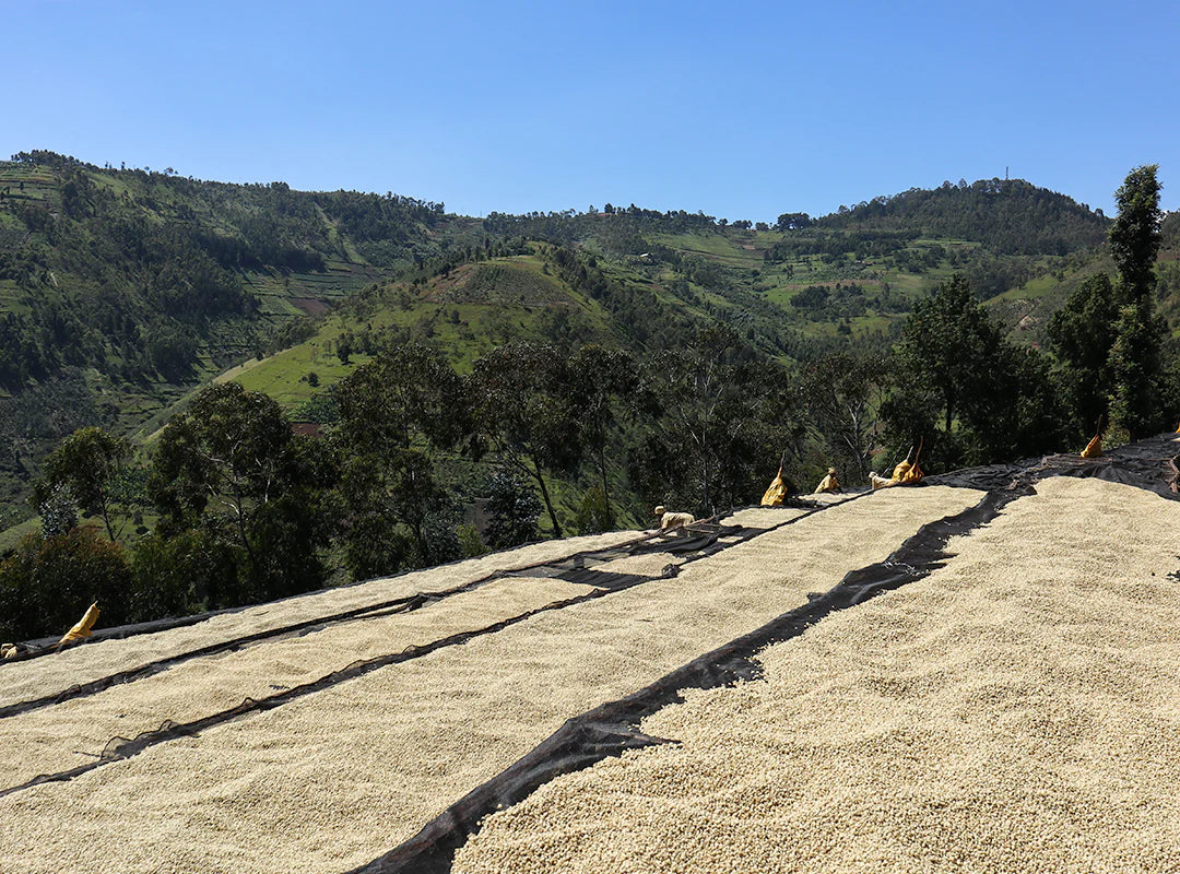 Mbilima is the highest altitude washing station of the Rwandan Dukunde Kawa Cooperative. It is run almost entirely by women, and all the coffee processed here is organic. Twenty of Mbilima’s smallholders combined their harvest to produce this beautiful coffee, which adds notes of brown sugar, raisins and delicate florals to our blend.